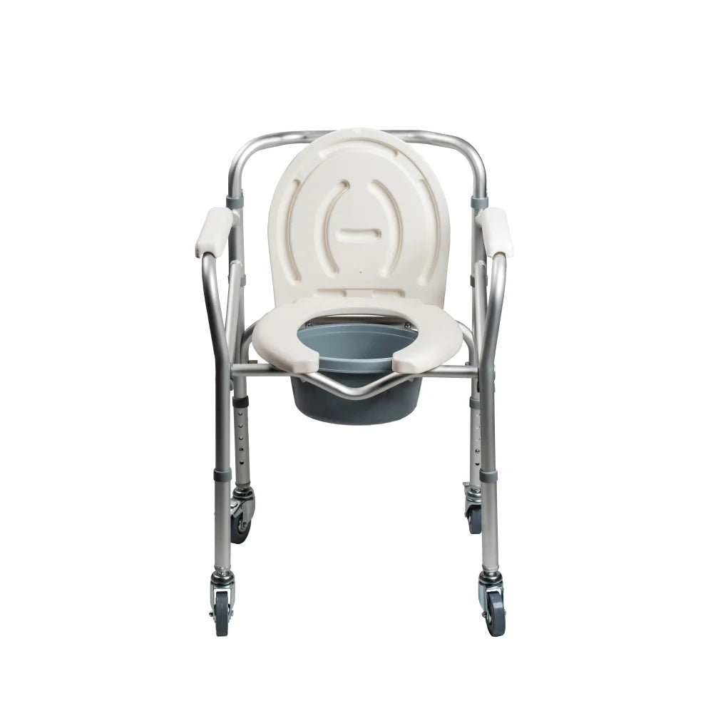 This is the ultimate support for your bathroom needs! Our ARREX VP40 ALUMINIUM Commode Chair has a chromed steel frame, solid castors with brakes, and adjustable height, plus an attached pot for convenience. Feel confident and secure with this chair that is designed to make your life easier.