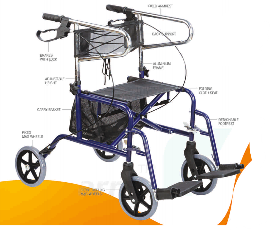 ARREX MR40 ROLLATOR - FOLDING CLOTH SEAT, CAR BASKET, MAG WHEELS, ADJUSTABLE HEIGHT, BRAKES WITH LOCK