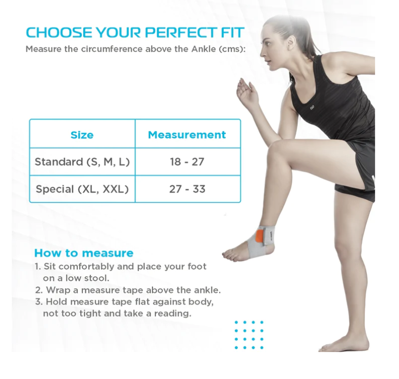 The Anklet with Ankle Binder is scientifically designed & uses loop elastic technology to ensure a perfect fit. The figure of 8 locking design provides medial and lateral support to the ankle and prevents twist injury.