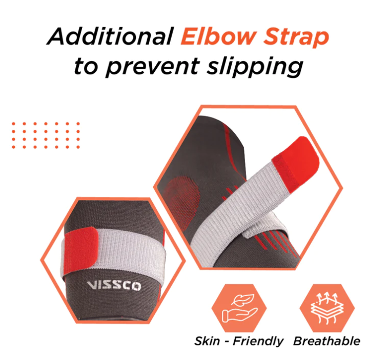 - Provides support to the weak and strained muscles of the elbow and the strap helps to hold the support in place and prevents slipping