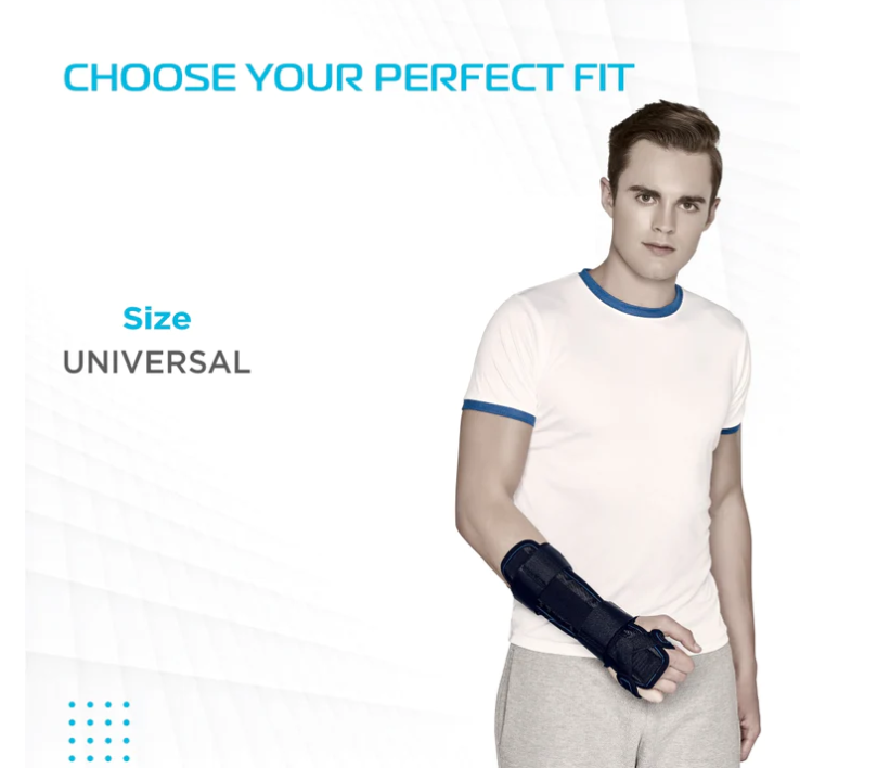 This wrist brace can be used for an acute wrist injury, Colle’s fracture, forearm fracture, Wrist sprain, wrist strain, Arthritis, Post-operative support, early cast removal and other conditions causing pain and discomfort in the wrist and forearm requiring firm support.