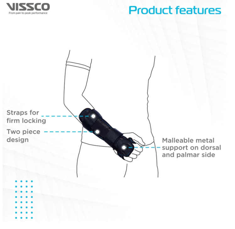 This support is scientifically designed to provide firm support to the wrist and forearm. It maintains the wrist in the cock-up/ functional position allowing free movements of the fingers and thumb. The composite material used is breathable and skin-friendly. The malleable brace on the dorsal and palmar side conform to the shape of the wrist and provide a firm support.