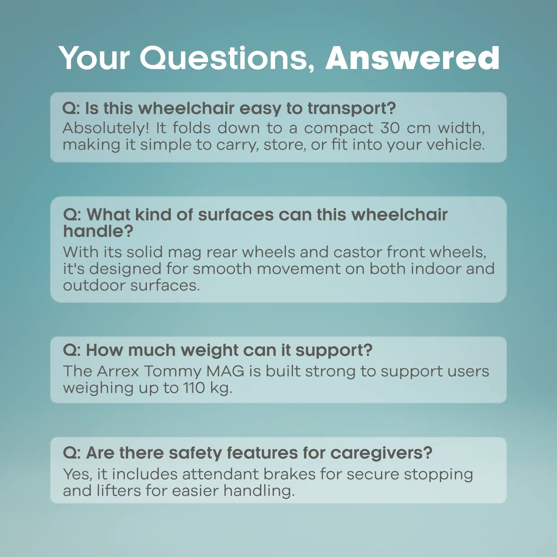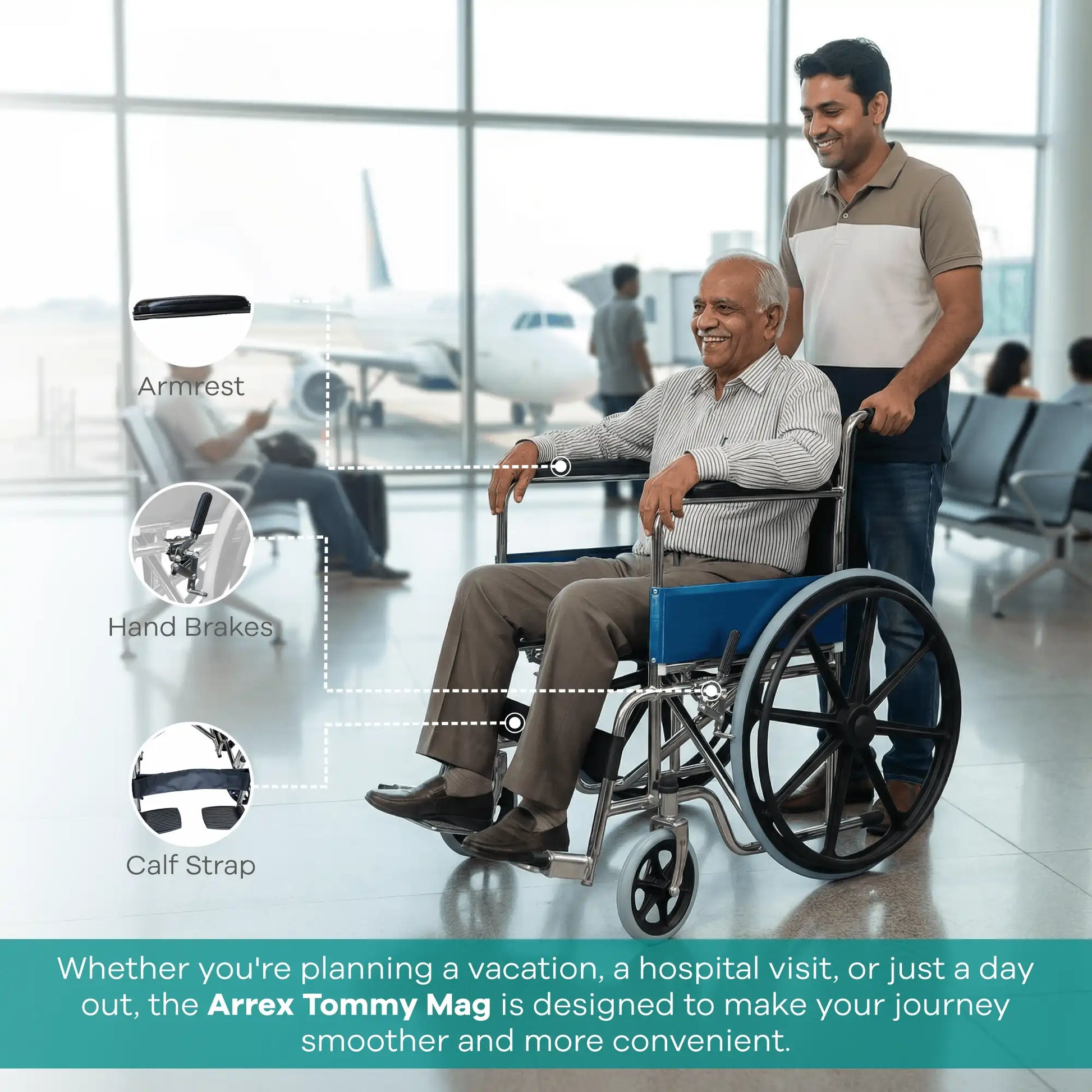 The ARREX Tommy MAG is the perfect blend of portability, performance, and everyday ease, suitable for homes, hospitals, clinics, and outdoor mobility needs.