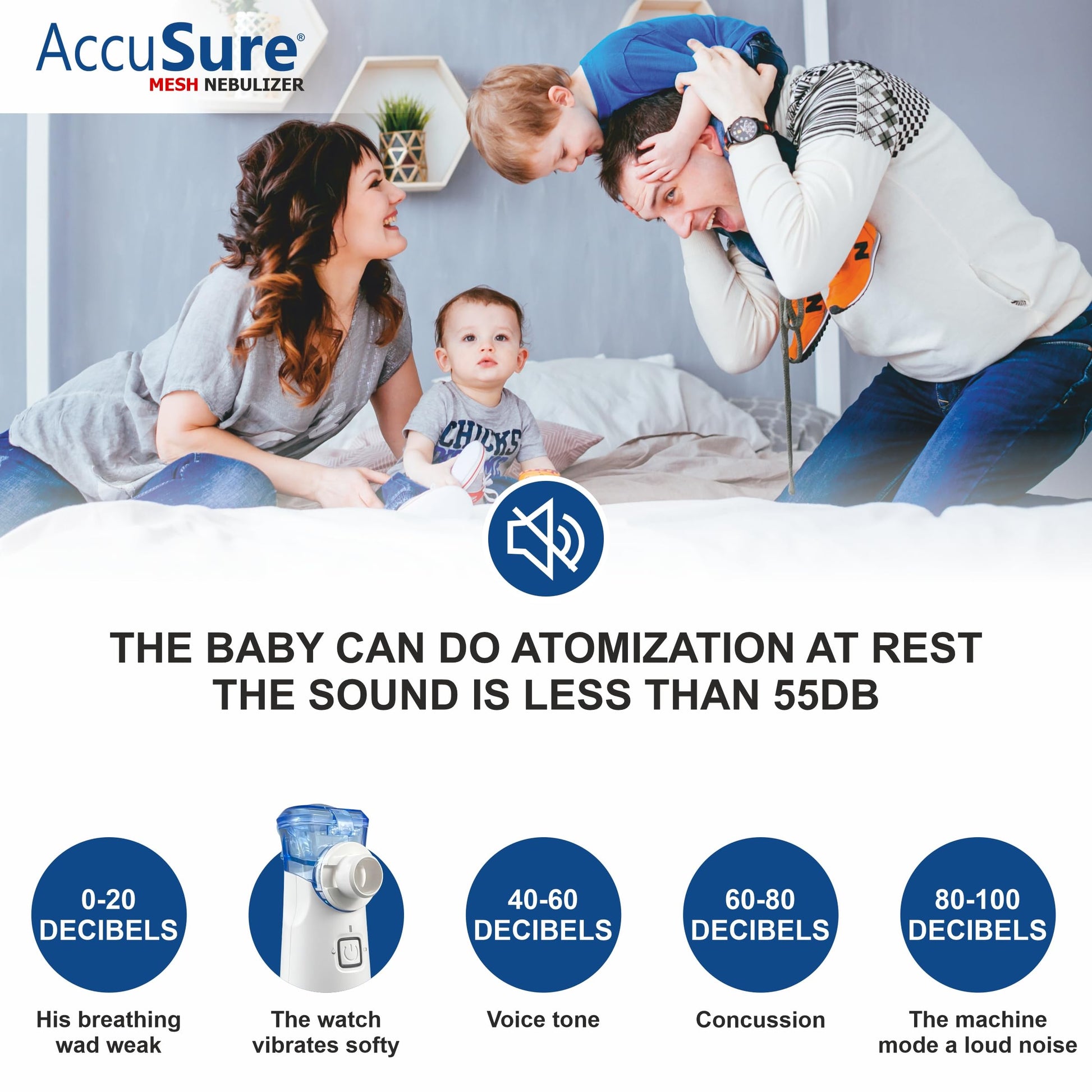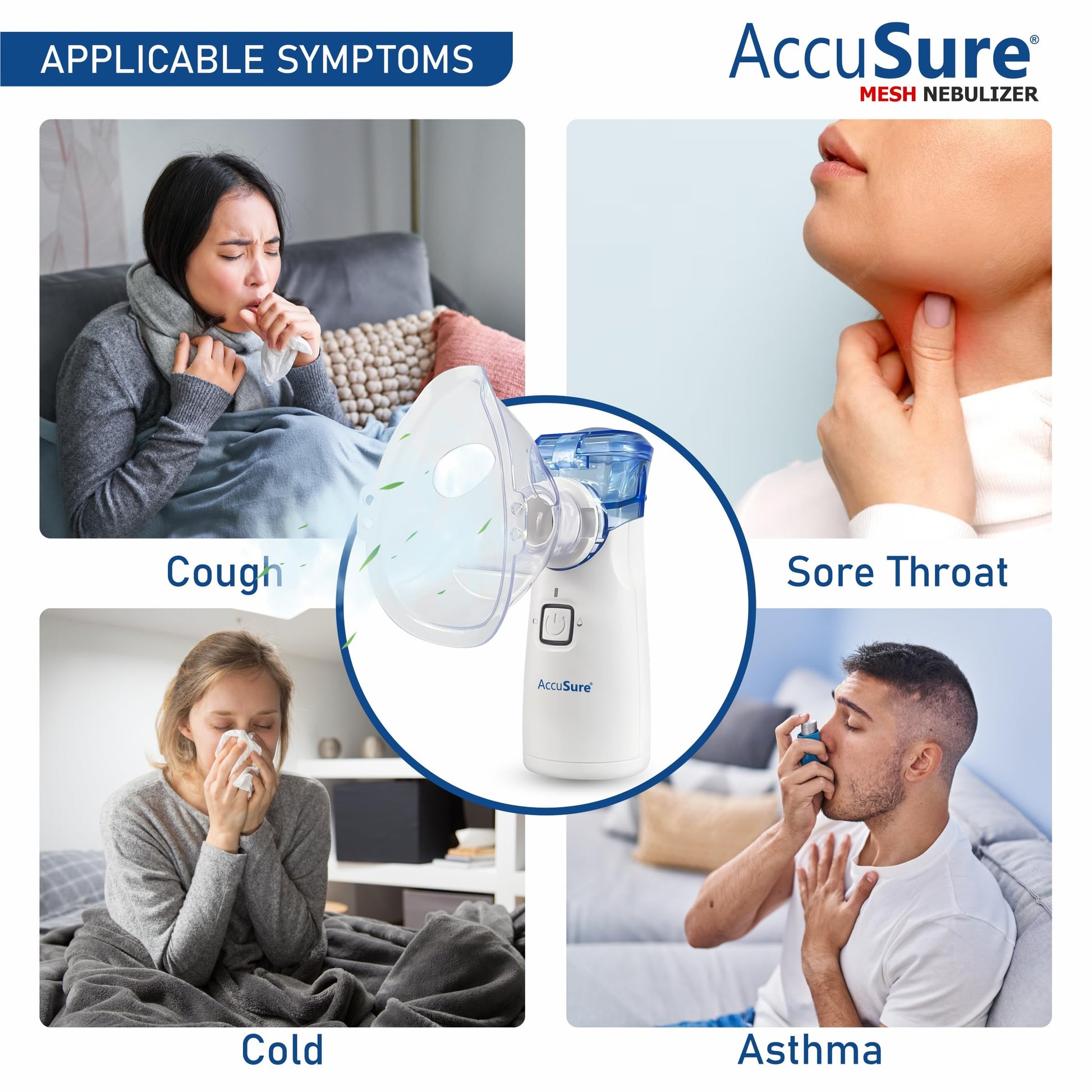 AccuSure Portable Mesh Nebuliser Machine With Box - Handheld Nebuliser Personal Asthma Pump For Breathing Problems For Travel, Home Daily Use