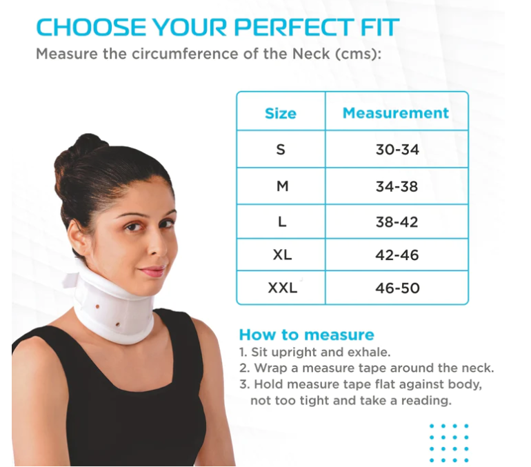 • Place the cervical collar around your neck and adjust its height accordingly.