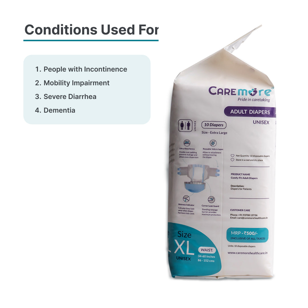 Long-lasting: The adult diapers last 7-8 hours providing the patient a hassle-free experience. These are 100% leak-proof tested and allow the patient to move around freely, preventing accidents.
