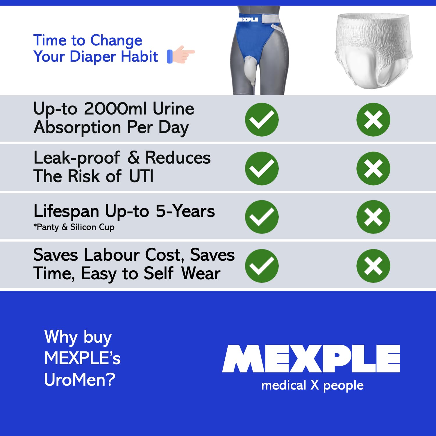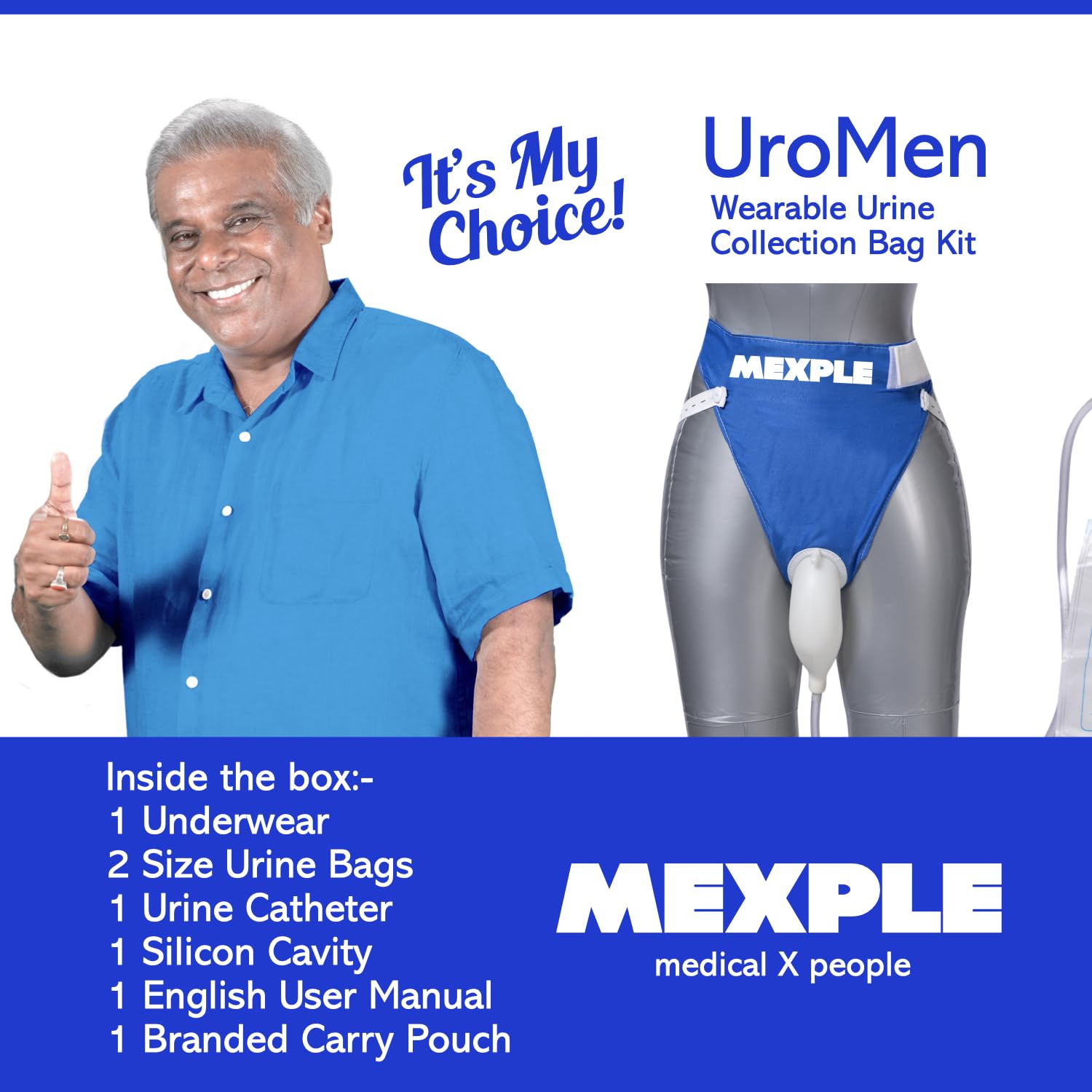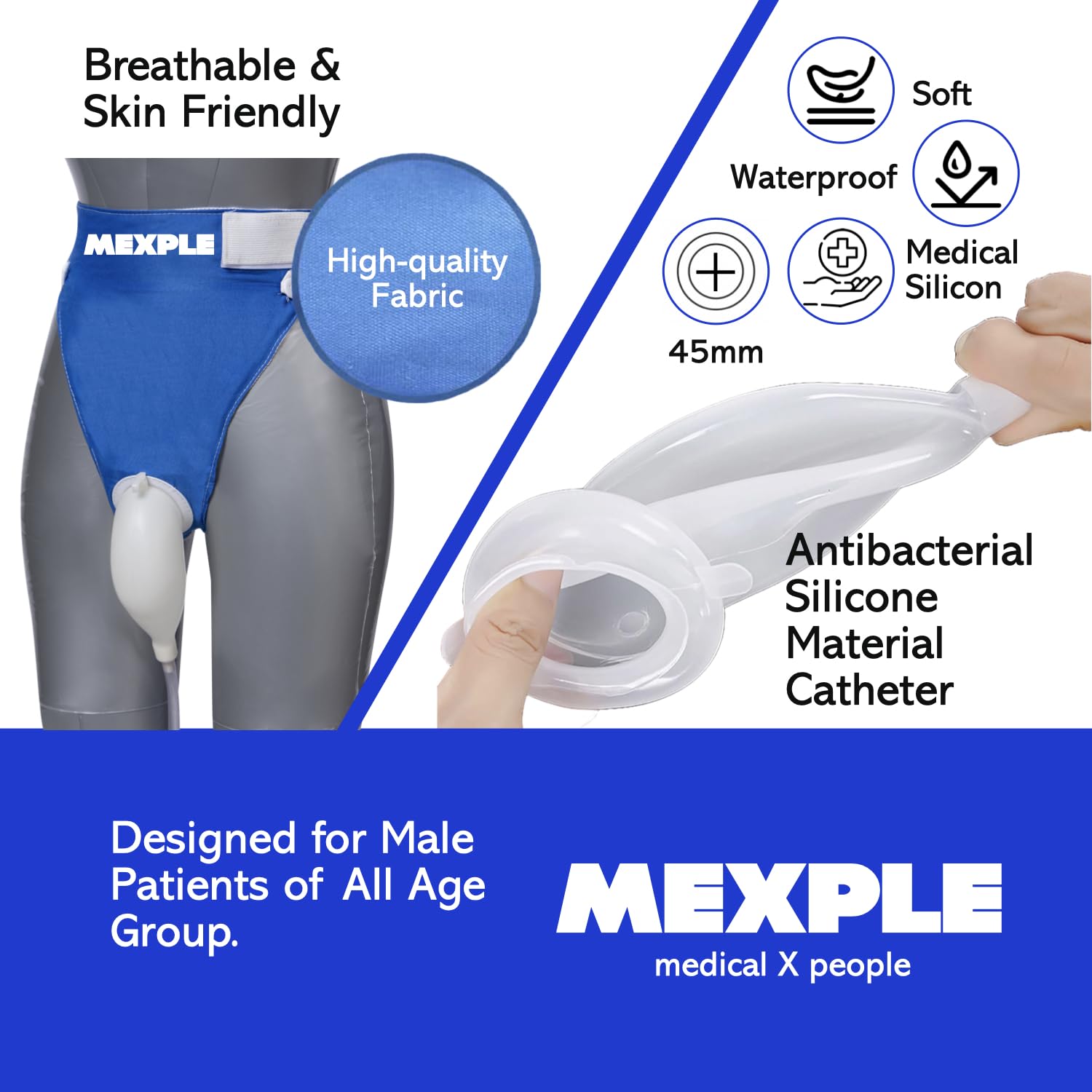 MEXPLE UroMen Wearable Urine Collection BagKit, Urine Collection Bag, Reusable Silicon Urine Bag Urinal Incontinence Set, External Catheter for Men, (1000ml + 2000ml) for Bedridden Patients, Blue