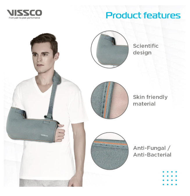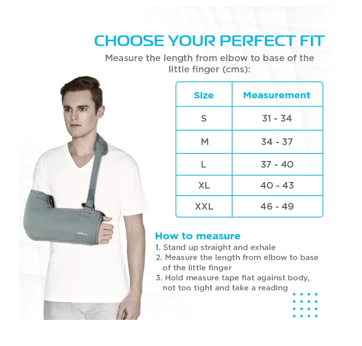Scientifically designed to support the shoulder in resting position. Loop strap system for easy height adjustment. Thumb locking to maintain the arm in the resting position for immediate noticeable therapeutic relief.