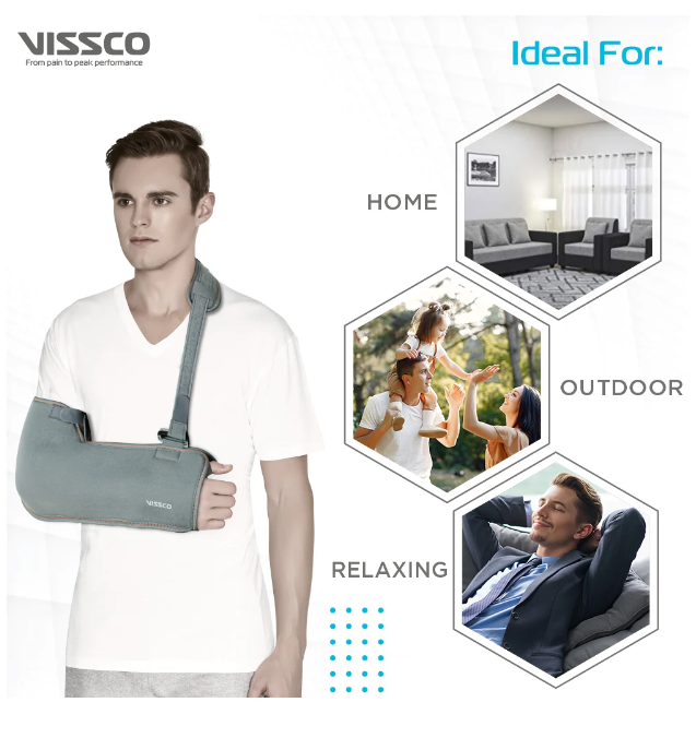 This tropical arm sling can be used for acute shoulder pain, rotator cuff tendinitis, shoulder subluxation, dislocation, post-surgery and other conditions causing pain and discomfort in the shoulder, and requiring mild support.