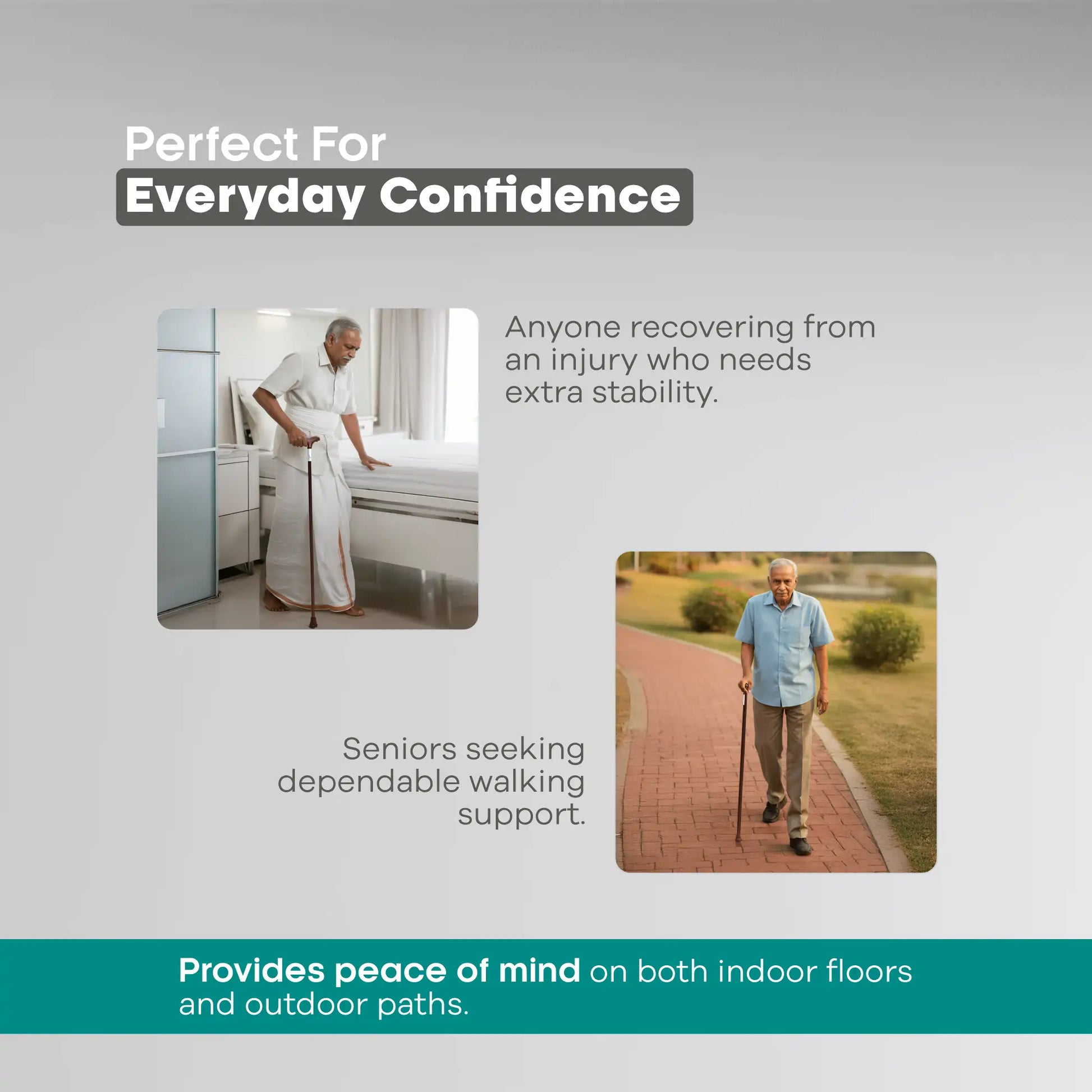 The MS10 Walking stick is the perfect help for anyone using it. It aids the senior by providing support while walking. The elegant design includes a custom-fit palm grip that perfectly fits the hands. With special attention to palm rest, this walking stick is sure to reduce your fatigue.