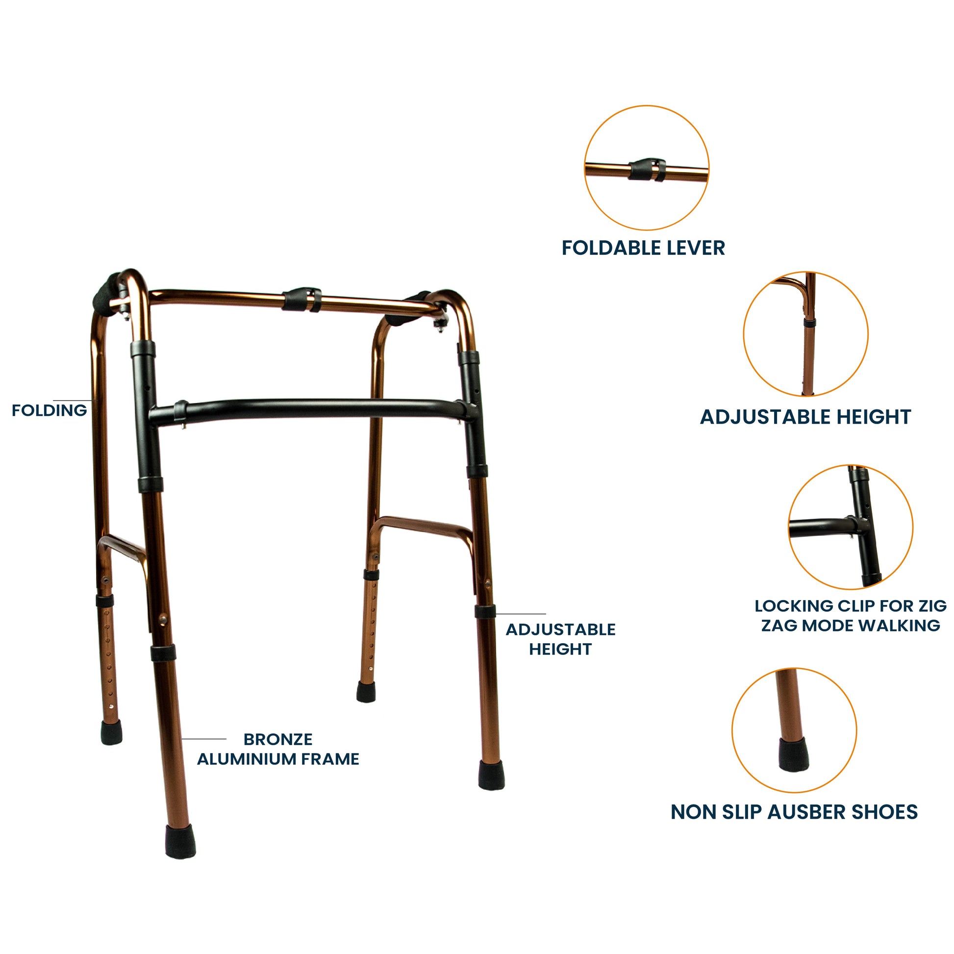 The ARREX M50 Walker is designed to make life easier. It is foldable for easy storage and transport and comes with non-slip rubber shoes for maximum traction. Its locking clip allows for zig-zag mode walking for added stability. Enjoy enhanced mobility and peace of mind with the ARREX M50 Walker.