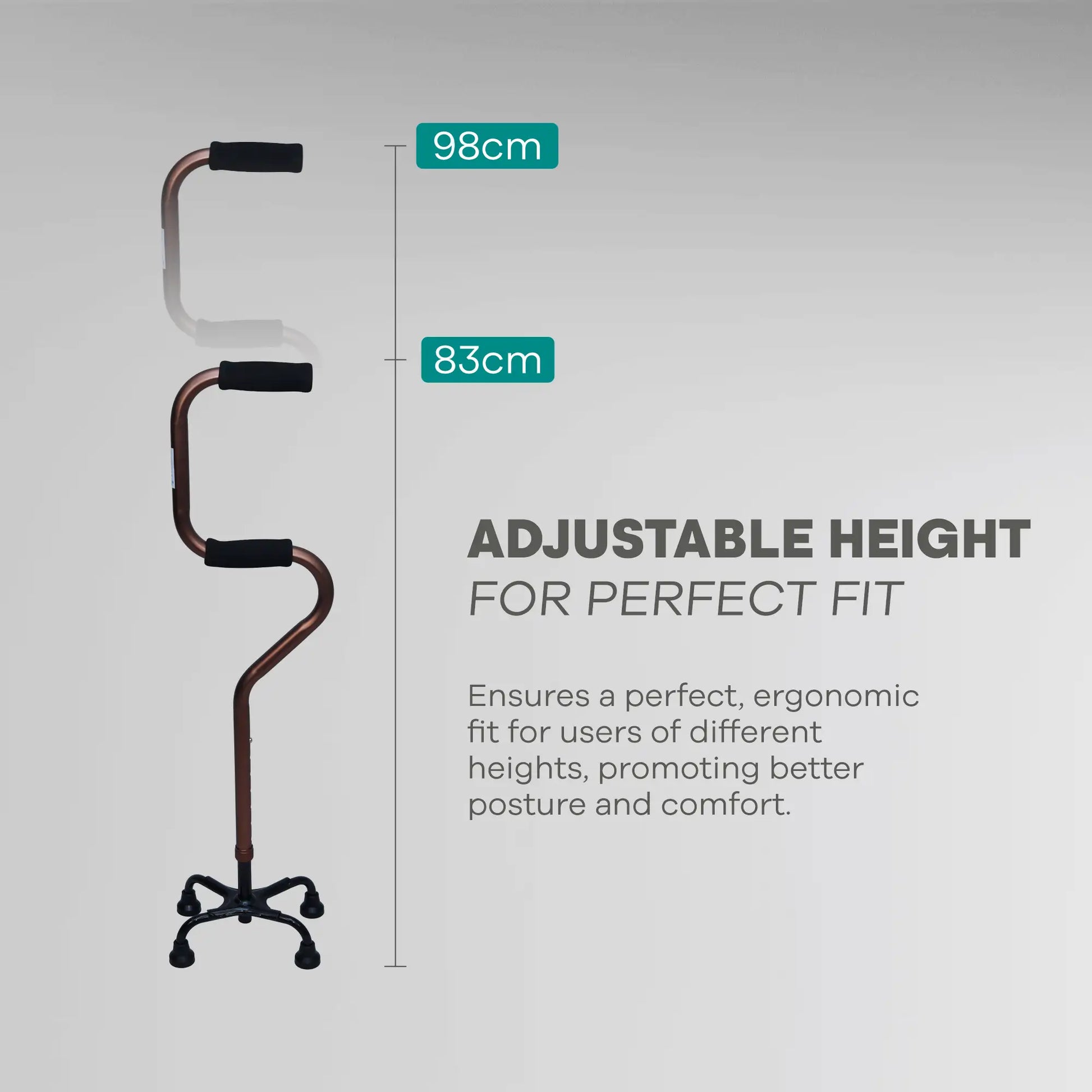 Lightweight Quad-Base Adjustable Walking Stick for Support ARREX MS360 AL
