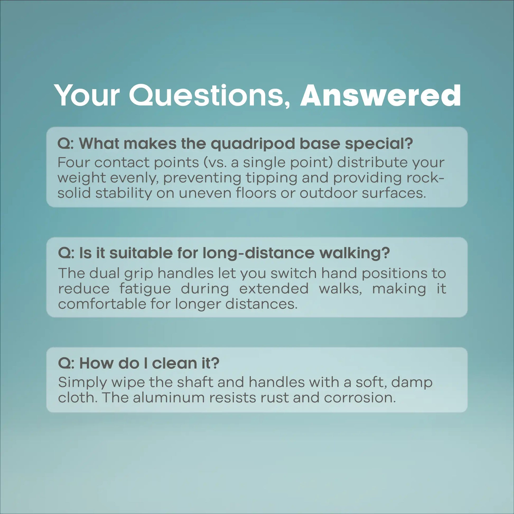 The walking stick also comes with an adjustable height feature so you can set it to your most comfortable position. Its anti-skid base ensures grip on different surfaces, helping prevent slips and boosting your peace of mind. Whether you’re recovering from an injury, managing mobility challenges, or simply need extra support, this walking stick offers reliable assistance with a modern and practical design.