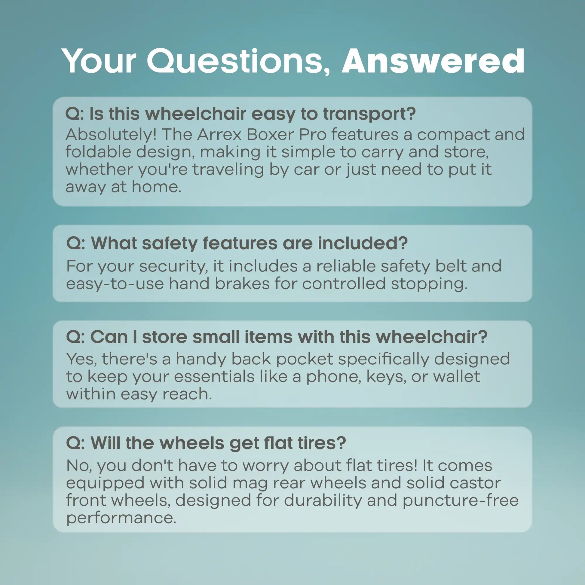 If you’re looking for a sturdy, easy-to-use wheelchair that balances comfort and function — the Arrex Boxer Pro Basic is a perfect everyday mobility companion.