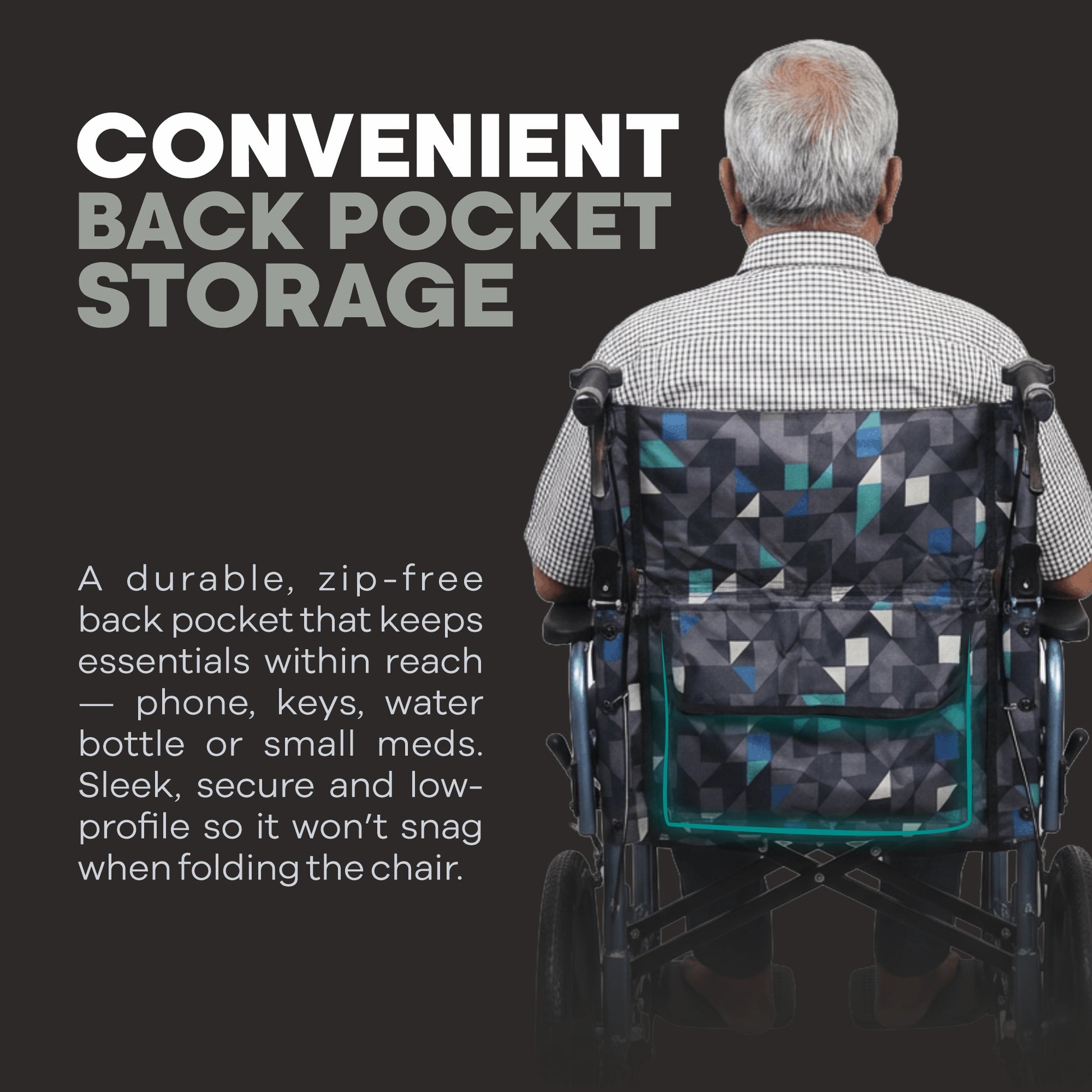 The wheelchair is designed for simple handling, whether used independently by the user or assisted by a caregiver. Its durable construction ensures long service life, while the premium finish adds to its overall usability and appearance.
